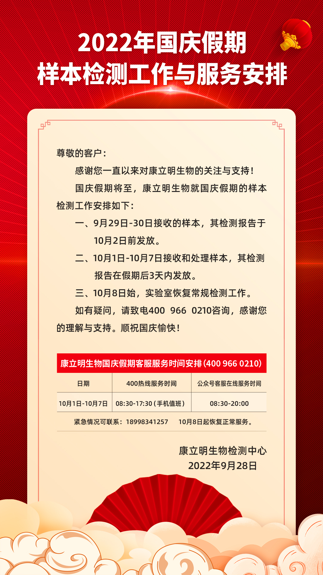 2022年國慶假期·樣本檢測工作與服務(wù)安排