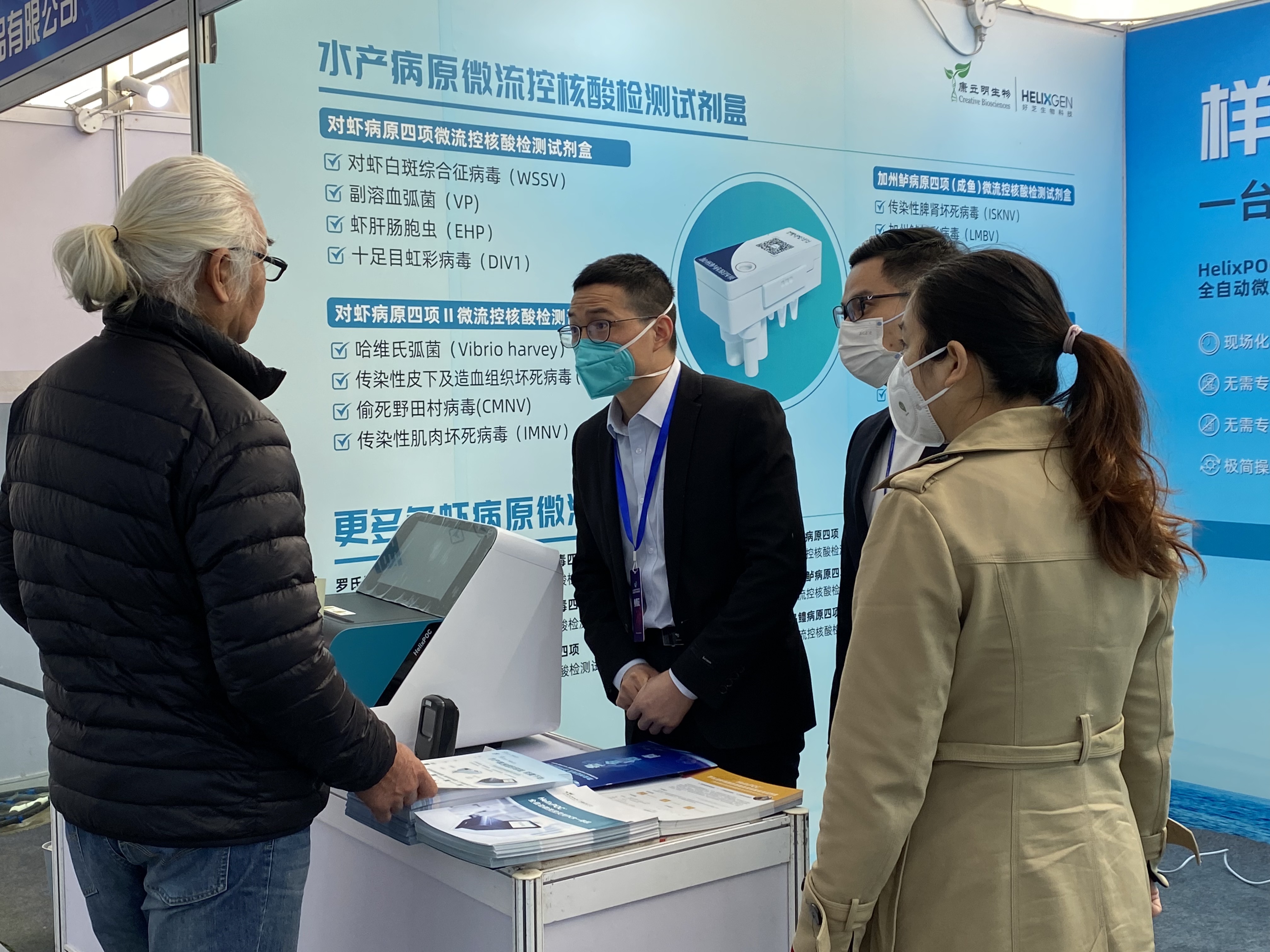 本次展會,康立明生物全資子公司好芝生物攜帶HelixPOC®全自動微流控熒光PCR一體機及HelixPOC®水產病原微流控核酸檢測試劑盒赴展。