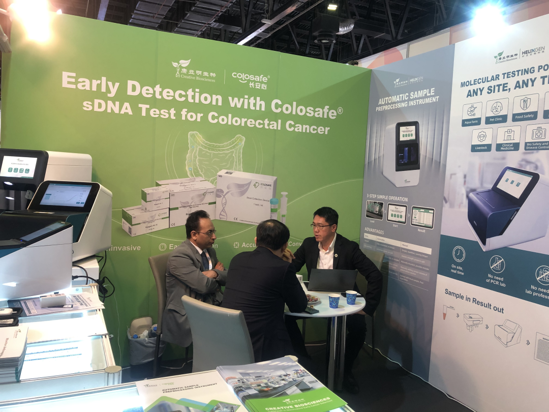 展會(huì)上,康立明生物創(chuàng)始人、腸癌早篩技術(shù)發(fā)明人鄒鴻志博士親臨現(xiàn)場(chǎng),并帶領(lǐng)專業(yè)團(tuán)隊(duì)為多方客戶熱情專業(yè)的講解,共同交流,洽談合作。并介紹了長安心®目前在國內(nèi)568051例應(yīng)用檢測(cè)(截至2022年12月31日)的成功模式與經(jīng)驗(yàn)。
