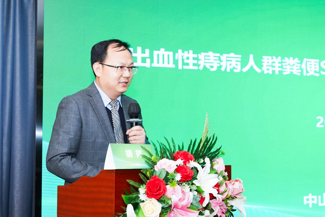 學(xué)術(shù)交流環(huán)節(jié),首先由成都肛腸??漆t(yī)院楊向東院長和貴州中醫(yī)藥大學(xué)第一附屬醫(yī)院曹波主任主持,中山大學(xué)附屬第六醫(yī)院胡邦博士匯報“出血性痔病人群糞便SDC2基因甲基化檢測的臨床意義”多中心臨床研究項目結(jié)題報告。